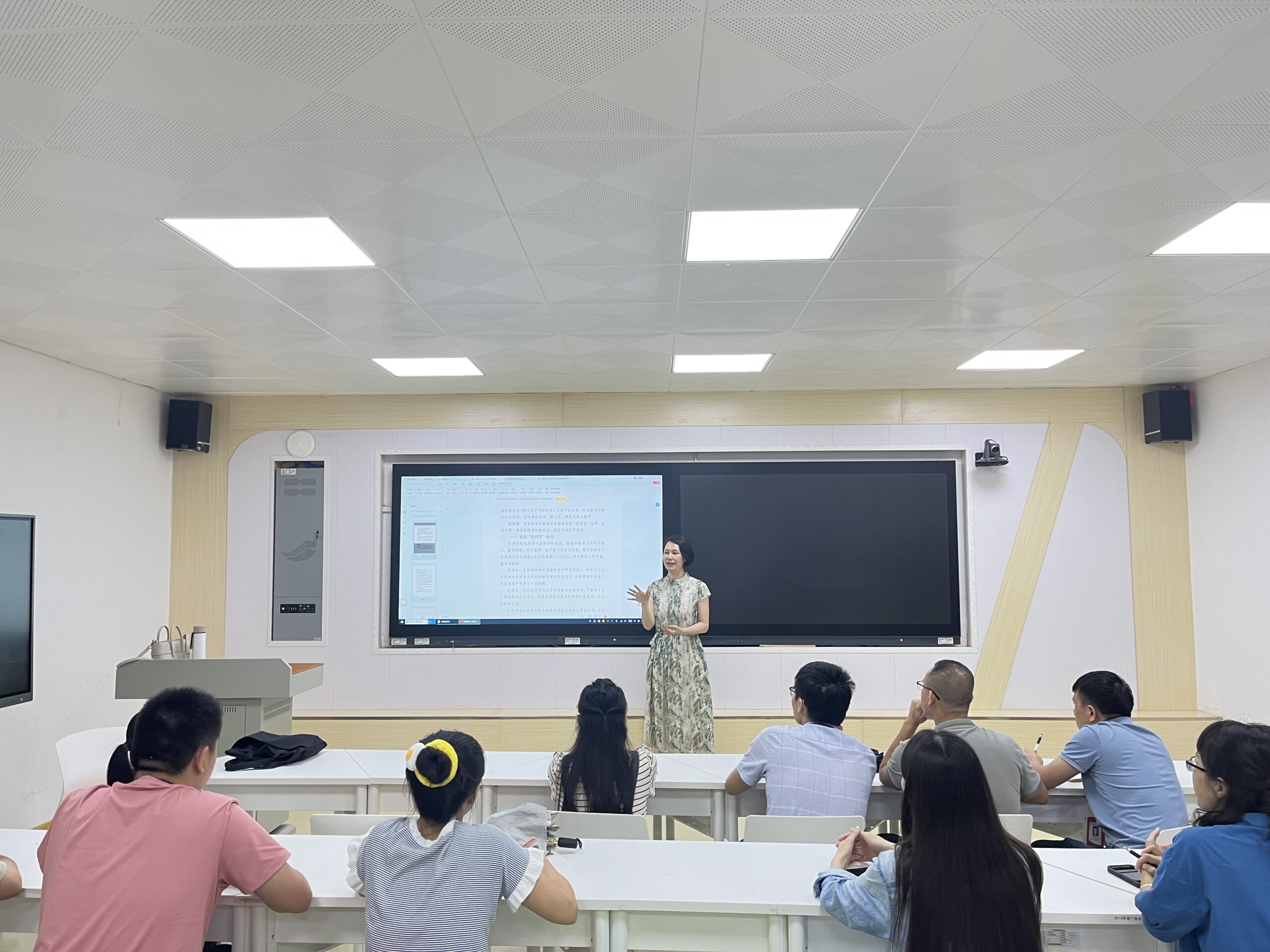 首先,莫静宁副主任解读了“双师型”教师的定义和广西职业教育“双师型”教师认定的相关文件,并强调“双师型”教师在学校及社会发展中的重要作用。接着,重点地讲解了申报“双师型”教师的认定标准,包括所要满足的基本条件、必备条件及破格条件。另外,她强调,在申报的过程中,要特别注意材料的真实性、申报的时间、申报的流程等。最后,对教师们在现场提出的问题进行了一一解答。